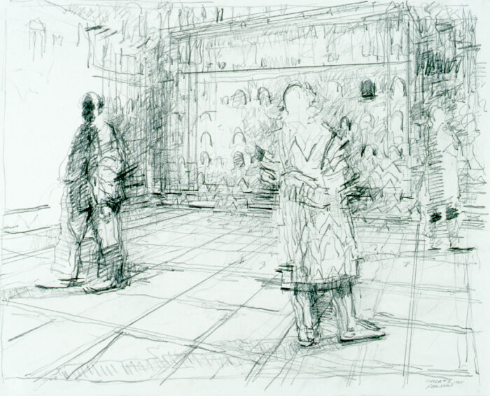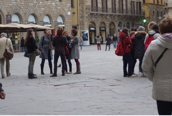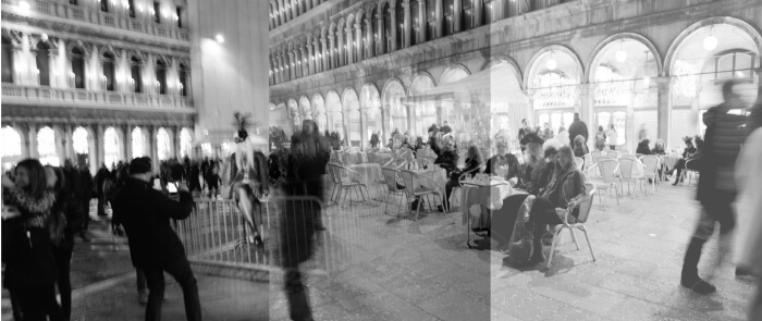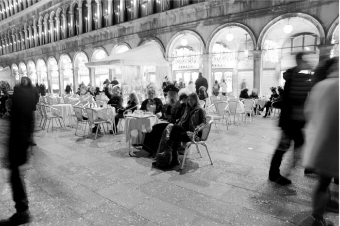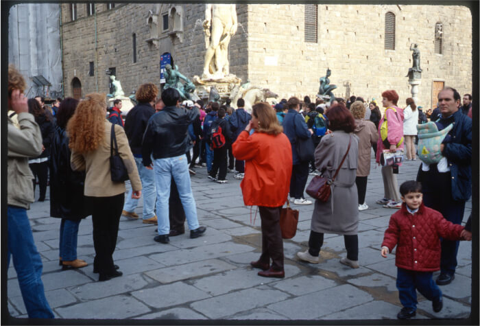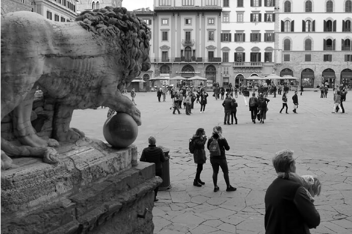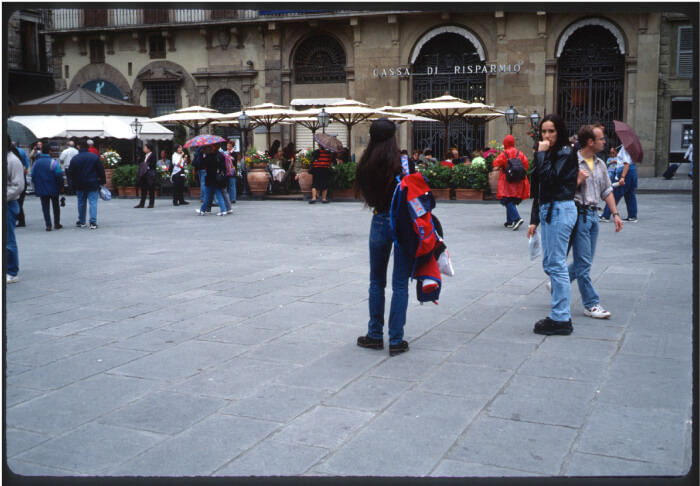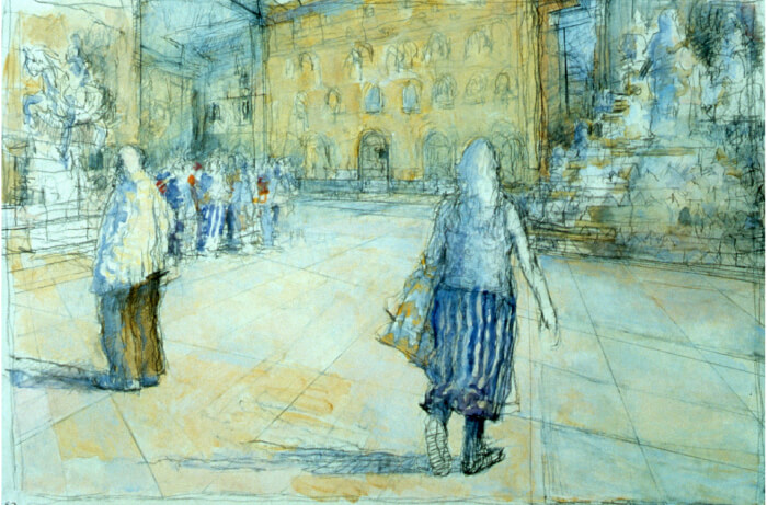 Florence and Venice with their urban design, architecture and structure of everyday life, have organized themselves with the piazza as the center of activity, commerce ,neighborhood and community. At the same time it is the space of coincidental encounters with anonymous strangers sometimes only for a moment. The experience of the city square is a complex contradictory combination of permanence and metamorphosis. The stage remains the same while the actors are transitory, always in motion and sometimes unpredictable. The experience is about movement in space.