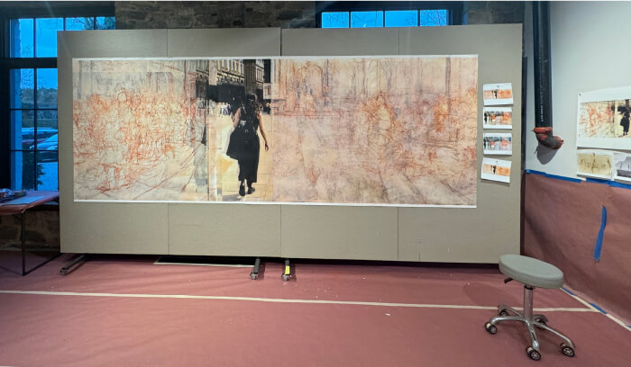 In January 2024 I received a residency at The Church, Sag Harbor and began working on large scale pieces each 5’x14’ for the project. They remain a work in progress.
