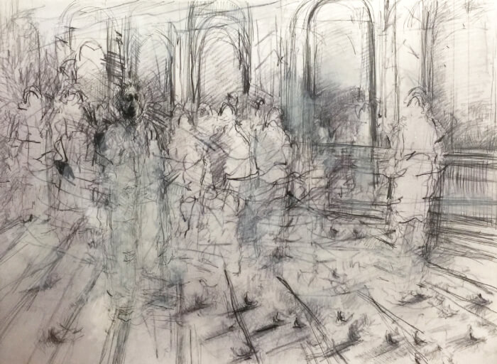 The goal of the project is to produce a site specific unified series of two-dimensional works that recreate the experience of standing in a piazza or city square.